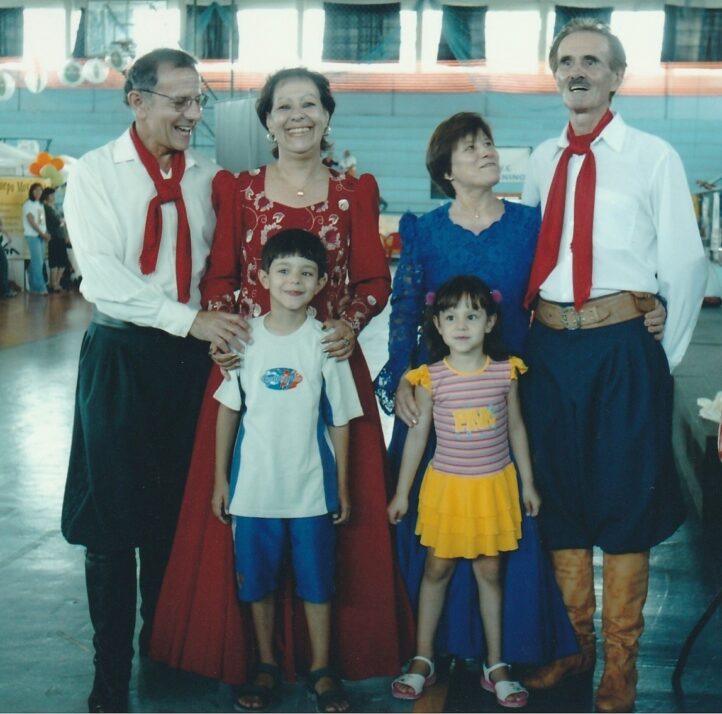 Mas o pai tinha seus prazeres – não tenho dúvidas – era católico dedicado, adorava ir na missa, se dividia entre as paróquias das redondezas: Santa Flora, Santa Rita, Santa Luzia e Nossa Senhora das Graças, contente com a amizade dos padres e envolvido com tarefas nas igrejas. E dançava! Curioso é que a disposição para os bailes retornou quando nasceu Felipe, primeiro neto, em 1998. Criança renova as famílias! Meus pais integraram-se a um grupo de danças de salão – gauchescas, óbvio! Pilchados à moda rodaram dezenas de bailes que restituíam aquele no qual se conheceram, em Guaporé. Imagino a primeira troca de olhares entre o Luiz e a Maria de Lourdes, atraídos pela juventude e beleza que possuíam, movimentando seus corpos no salão, inquietos e contentes um nos braços do outro. Passaram 62 anos juntos. Ninguém venha me dizer que longos casamentos são felizes. Meus pais tiveram suas dificuldades, frustrações de um longo convívio e da mudança de valores que altera a vida e fustiga novos desejos. Porém, permaneceram firmes pois apesar de terem saído do interior, o interior nunca saiu deles. Se urbanizaram mas não se modernizaram. A mãe seguiu fazendo em casa o pão e a massa de todos os dias (comprada, nem pensar!) e eu sempre tive confiança de aparecer para o almoço sem avisar porque comida haveria.